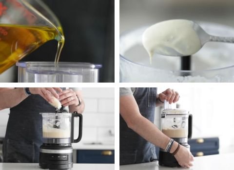 - Place anchovy pieces and garlic in a food processor. Pulse many times until both are finely chopped. They should look like a paste. Add pasteurized eggs and squeeze in fresh lemon juice. Blend on high until smooth. The mixture should turn pale and creamy.