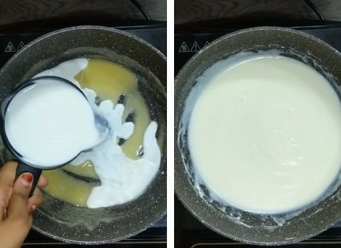 - Pour in about a quarter of the milk. Whisk until smooth. Add another quarter, whisk again, and repeat until all the milk is added. This prevents lumps and creates a smooth, creamy sauce.
