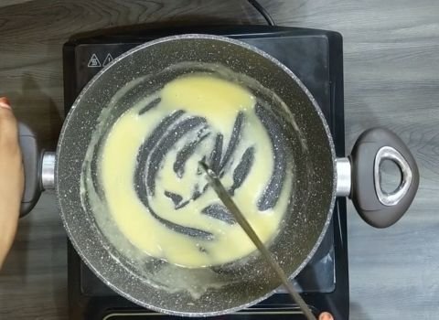 - Keep cooking over medium heat, stirring often. After 4–5 minutes, the sauce will thicken. It should coat your whisk when it’s ready.