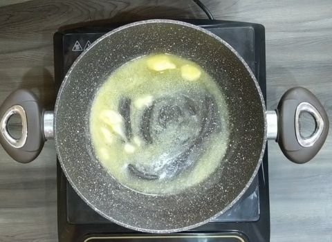 Place your saucepan on the stove over medium heat. Add the butter to the pan. Let it melt completely, but don’t let it brown. Watch closely – the butter should be melted and just start to bubble.