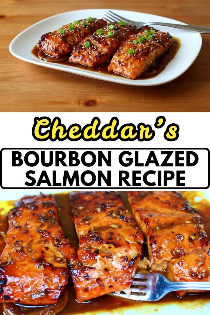 Cheddar’s bourbon glazed salmon is a pan-seared or oven-baked salmon dish finished with a rich bourbon-based glaze.