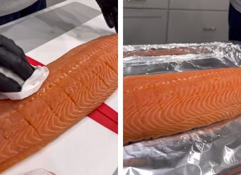 - Dry the Salmon Well: Removing surface moisture helps seasoning stick and supports even browning during baking.