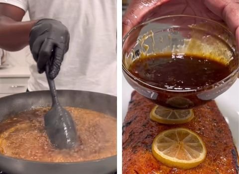 The sauce blends sweet and salty flavors with a gentle smoky touch, creating a glossy finish on the fish.
