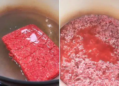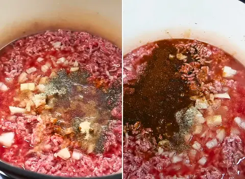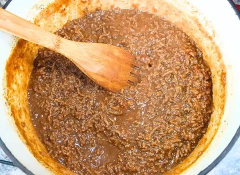 - 2 cups water: The water helps break down the beef into tiny pieces and creates the right consistency. Don’t worry – it will cook down.