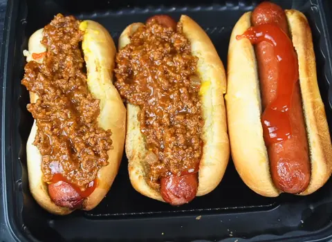 - Classic Hot Dogs: Serve on grilled or steamed hot dogs with chopped onions, mustard, and a sprinkle of shredded cheddar.