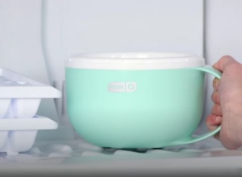 Put the Dash My Mug bowl in your freezer for at least 24 hours. Keep it upright. Your freezer should be at 0°F or colder. I pop mine in the night before so it’s ready.