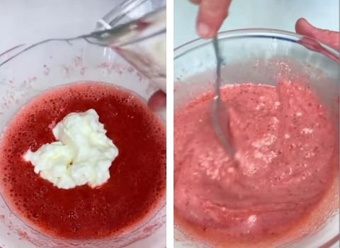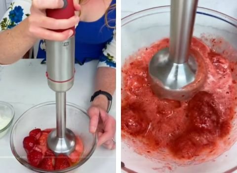If your mixture looks too runny after blending, it might have too much liquid from the strawberries. Add a bit more cream to thicken it.