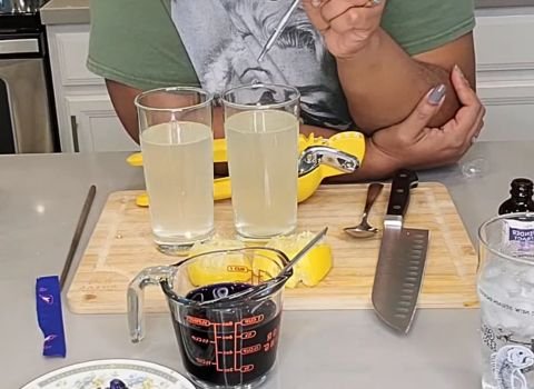 - 1 teaspoon butterfly pea flowers + 1 cup hot water: This dried flower tea gives the drink its signature blue color, which changes to purple when mixed with lemon juice. If unavailable, hibiscus tea can be a backup, though it gives a deeper red color.