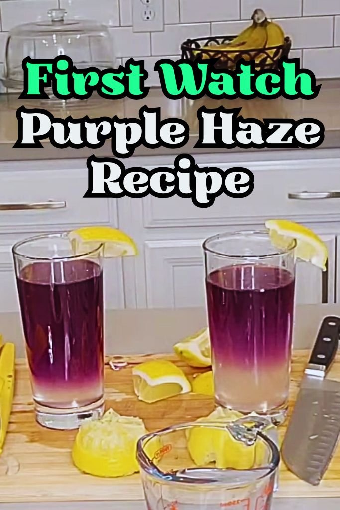 The Purple Haze is a very popular drink at the First Watch restaurant. It is known for its beautiful purple color. The color comes from a special tea called butterfly pea flower tea.