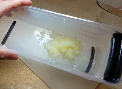 - Grate about 1 teaspoon of fresh onion using a microplane or fine grater. Place it in a small bowl.