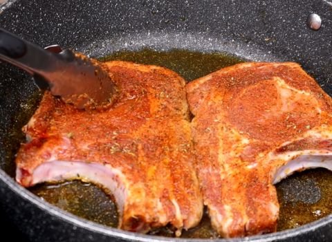 Thin chops dry out too fast. Thick chops stay juicy inside while getting a nice brown crust outside. The bone adds extra flavor while cooking. It also helps the meat cook evenly.