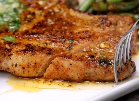 Let pork chops rest for 3–5 minutes before serving. This keeps the juices inside for tender, juicy meat.