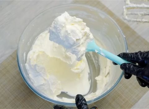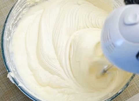 The mixture should look light and pale yellow. It should feel fluffy, almost like whipped cream.