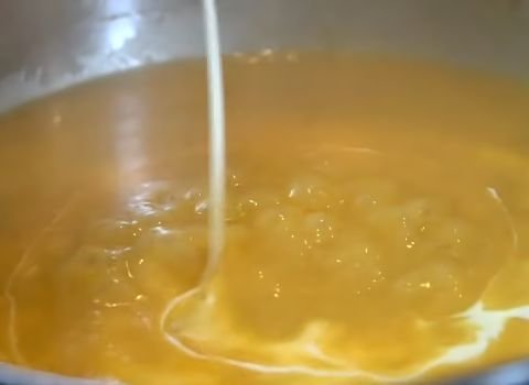 - Slowly pour in the chicken stock while whisking to prevent lumps. Continue whisking until the mixture is smooth. Add the heavy cream and stir until the sauce becomes creamy and well combined.