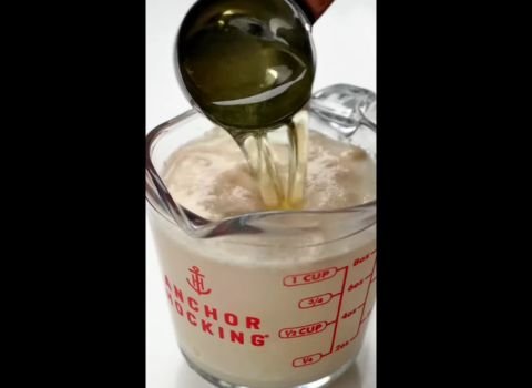 Take a small bowl and pour in the vegetable oil. Add the salt and stir it well until everything is combined. This simple mix helps add flavor to the dough and keeps it soft. Set this bowl aside for later use.