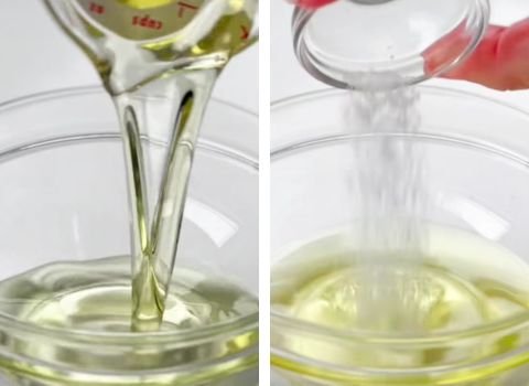 In a small bowl, combine the vegetable oil and salt. Stir well and set aside.