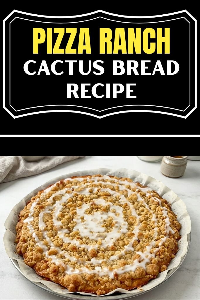 Pizza Ranch Cactus Bread is a sweet dessert pizza that many people love at Pizza Ranch. It has a thick, soft crust with a crumbly topping and a light glaze on top.