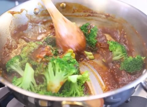 Add 1 cup of water (or broccoli water), ½ teaspoon onion powder, ¼ cup soy sauce, 1–2 tablespoons brown sugar, 2 teaspoons mustard, and 2–3 tablespoons Marmite or oyster sauce. Stir well.