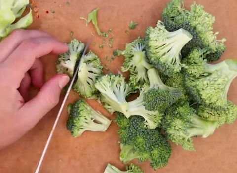 3. Trim broccoli crown into florets. Slice stems if desired. Keep florets slightly large—they shrink slightly when cooked.
