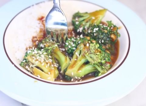 8. Spoon broccoli and sauce over steamed rice. Sprinkle sesame seeds if desired. Serve immediately.