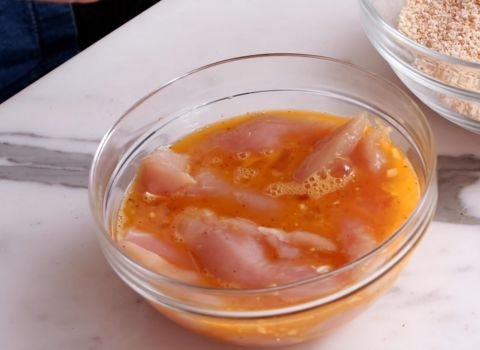 • Dry the Chicken Well: Wet tenders = soggy breading. Pat them thoroughly before coating.