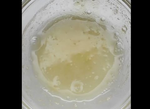 - In a small cup, mix unflavored gelatin with hot water until fully dissolved.