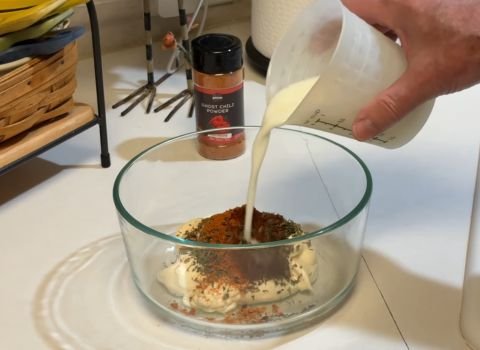 • 1/2 cup buttermilk: Buttermilk helps thin the sauce and adds a fresh, tangy flavor. It gives the dressing that classic ranch taste. If buttermilk is not available, mix 1/2 cup regular milk with 1 tablespoon lemon juice or vinegar. Let it sit for 5 minutes before adding it to the sauce.
