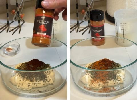 2. Stir in 1/4 teaspoon ghost pepper powder for mild heat, or 1/2 teaspoon for extra spice. Whisk to fully combine.